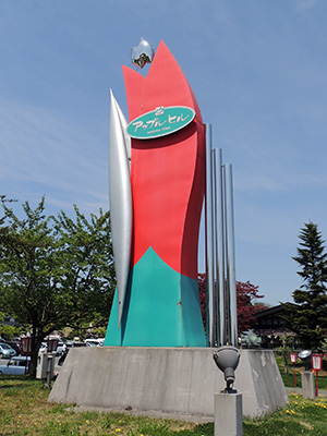 東北自動車道を浪岡ICで降り、国道7号浪岡バイパスに入ると、右手にモニュメントが見えてきます。弘前市内から来る場合は、国道7号を北上して浪岡バイパスへ入ると左側にあります。