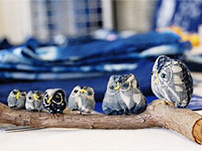 あおもり藍工房で使用する藍は、独自に開発された天然染料です。これまでの藍染めには不可欠だった「すくも」の製造をはぶき、藍葉を乾燥・粉砕することにより、天然染料を10日間程度で簡単に製造できる方法を開発しました。