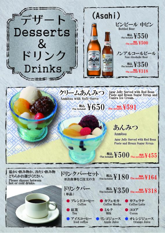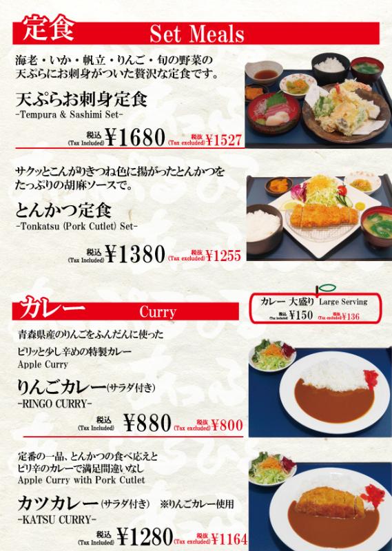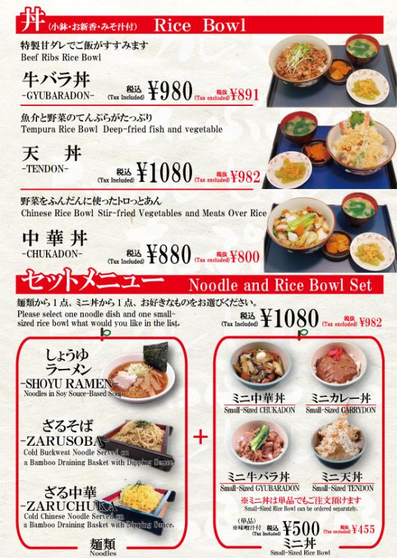 丼物・定食・麺・ドリンク・デザートと、種類も豊富です。季節毎の限定メニューもありますので、四季折々の旬の味を楽しむことができます。
